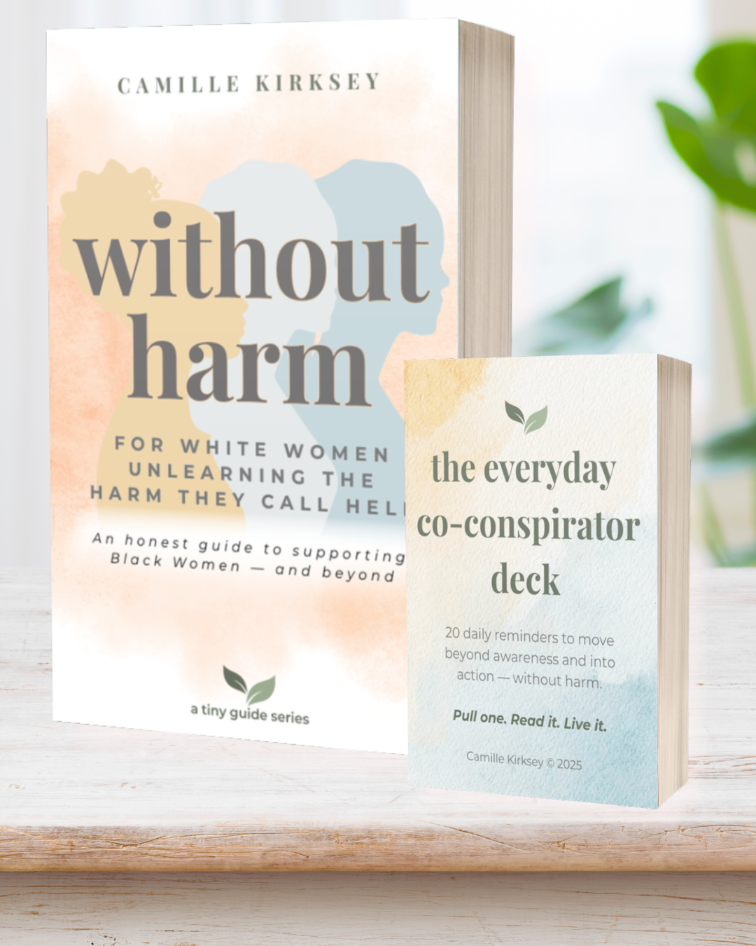 The Without Harm Guide + Daily Practice Bundle helps white women understand their impact, unlearn harmful patterns, and practice change that actually matters.